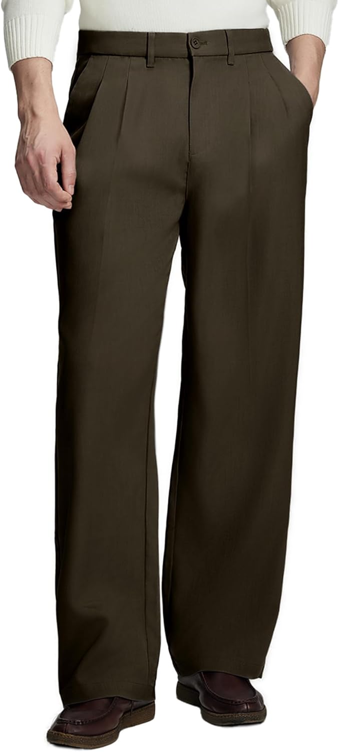 • 【Classic Meets Vintage】 Featuring a pleated front and wide-leg design, these mens baggy dress pants blend classic suit tailoring with a touch of vintage charm, effortlessly creating a sophisticated “old money” aesthetic.