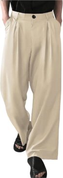- The pleated pants men features with fold pleated, wide leg pants men, men’s high waisted pants, work pants for women